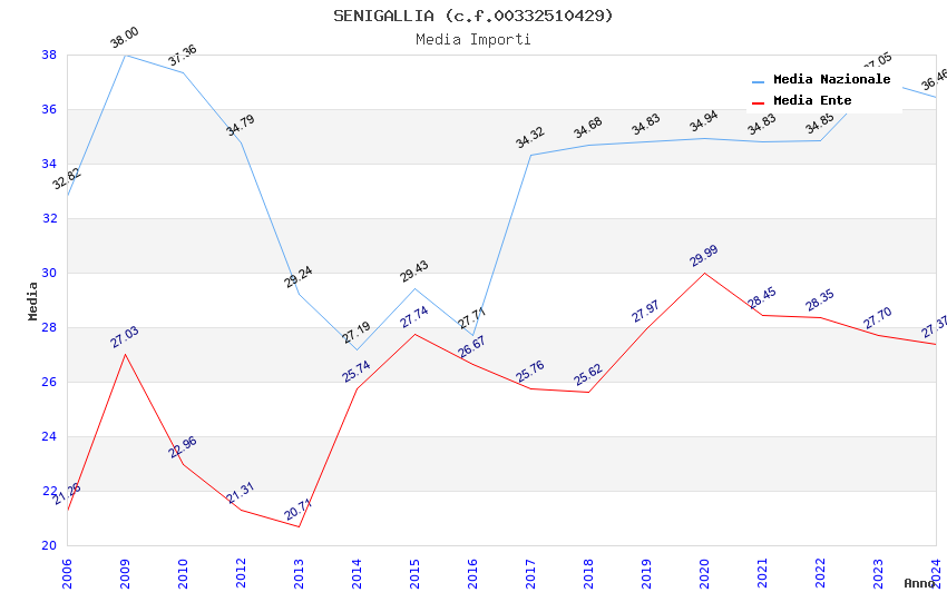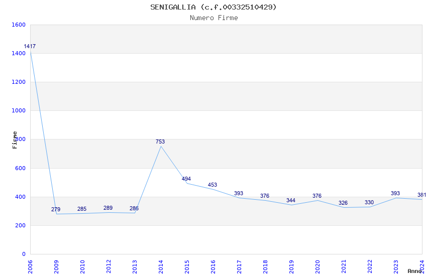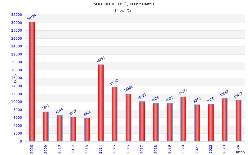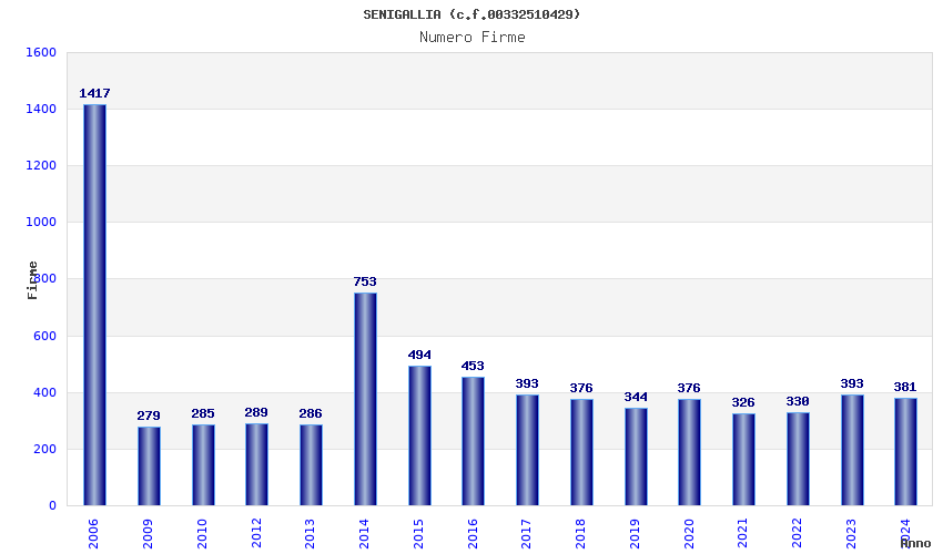 | Anno | Firme | Importi | Media | Naz. | Reg. | Prov. | Comu. |