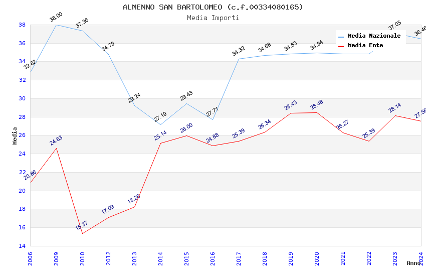 | Anno | Firme | Importi | Media | Naz. | Reg. | Prov. | Comu. |