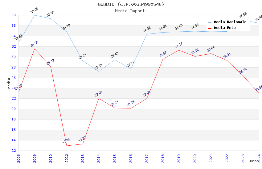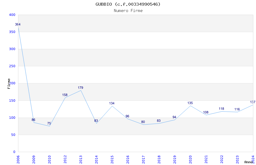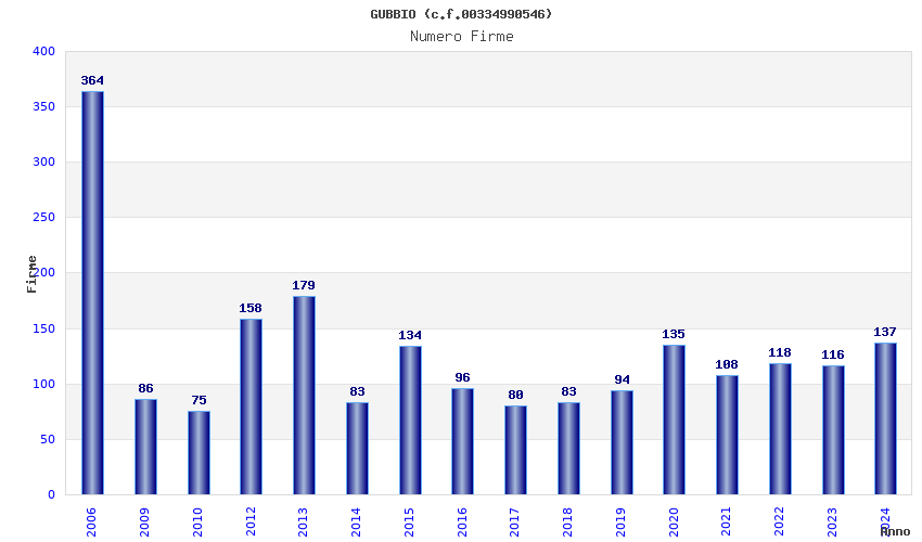 | Anno | Firme | Importi | Media | Naz. | Reg. | Prov. | Comu. |