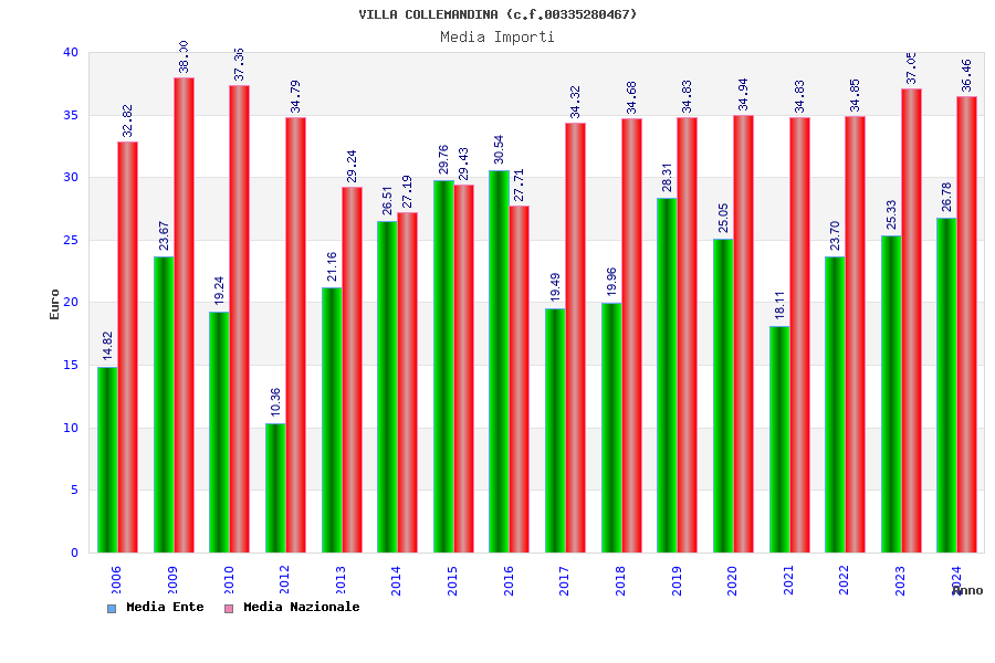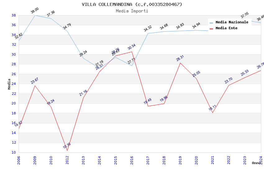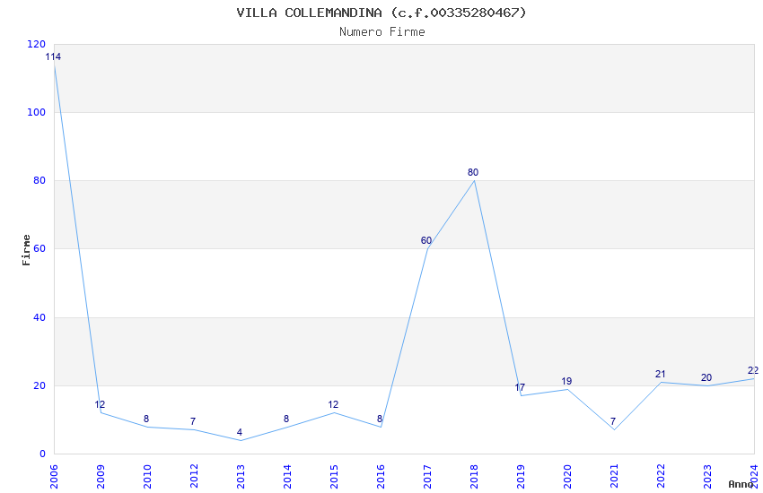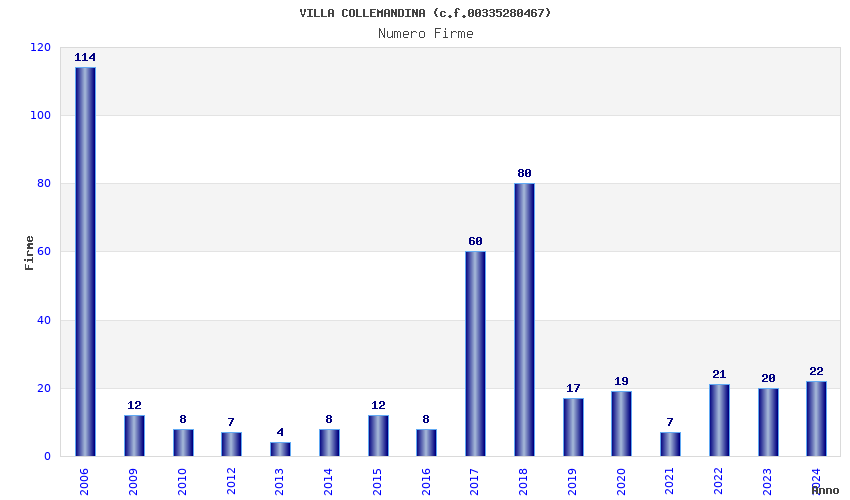 | Anno | Firme | Importi | Media | Naz. | Reg. | Prov. | Comu. |