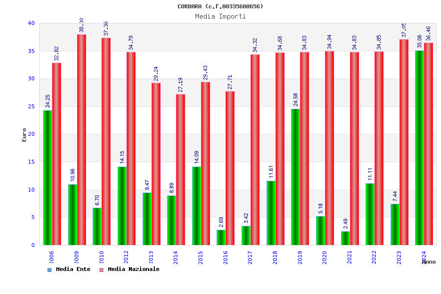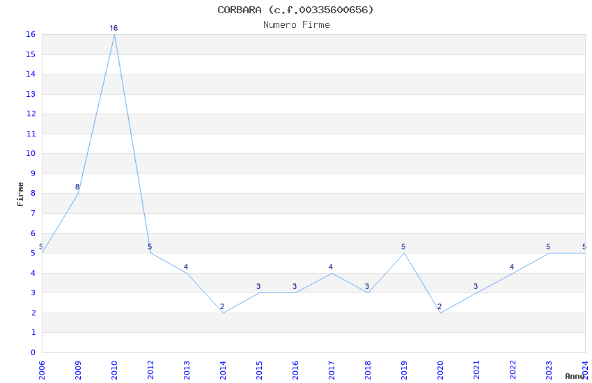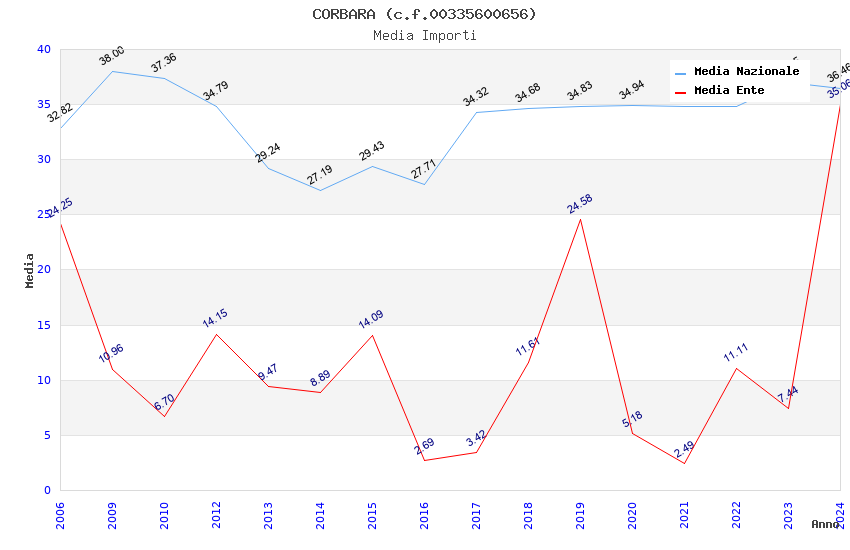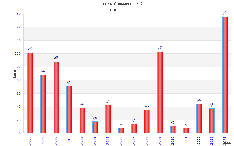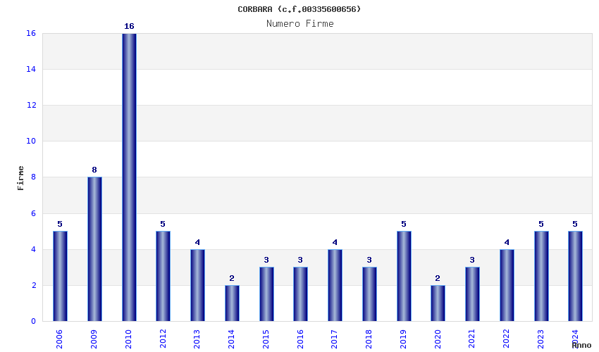 | Anno | Firme | Importi | Media | Naz. | Reg. | Prov. | Comu. |