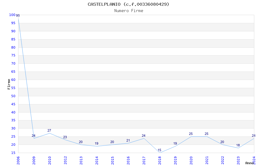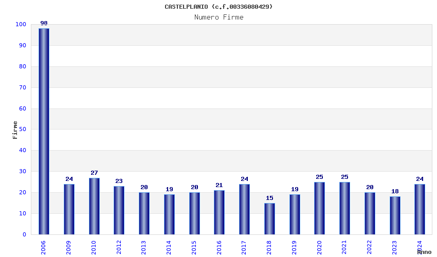 | Anno | Firme | Importi | Media | Naz. | Reg. | Prov. | Comu. |