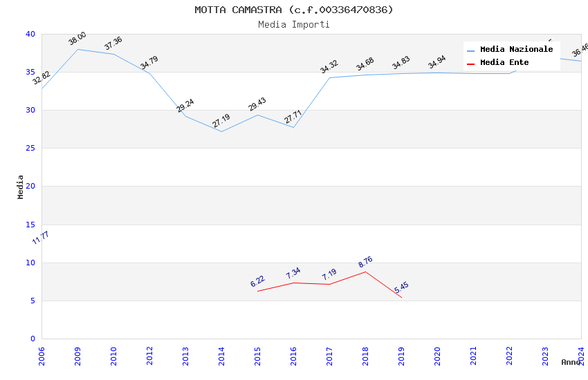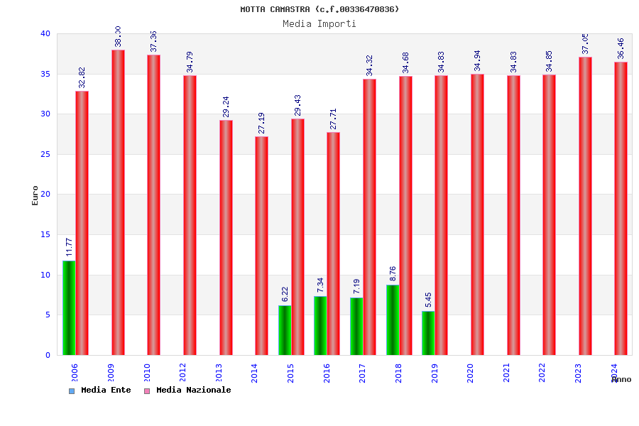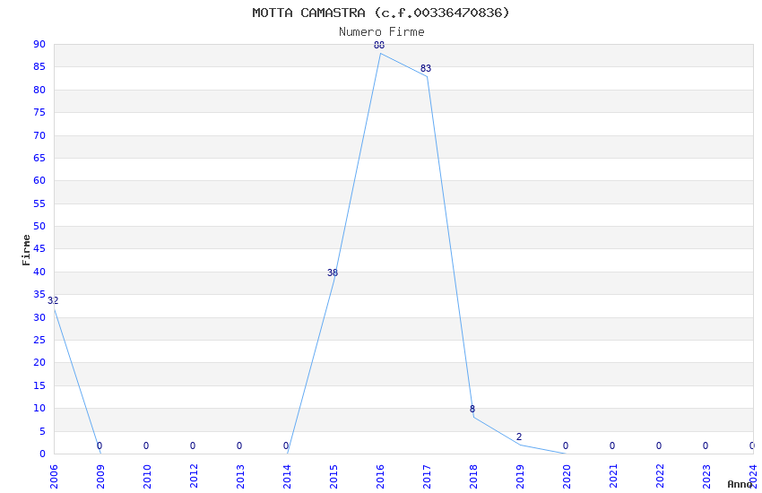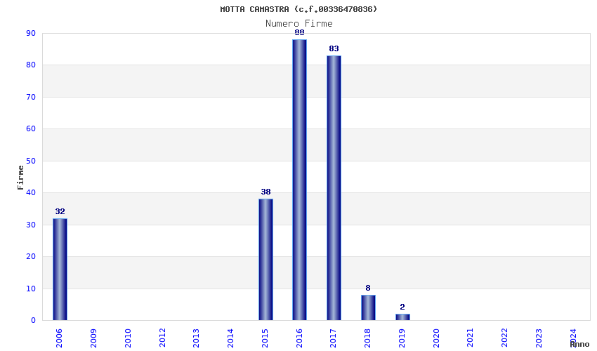 | Anno | Firme | Importi | Media | Naz. | Reg. | Prov. | Comu. |