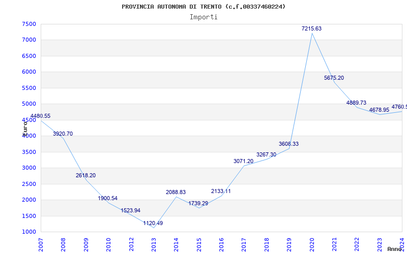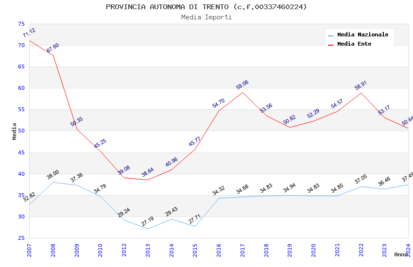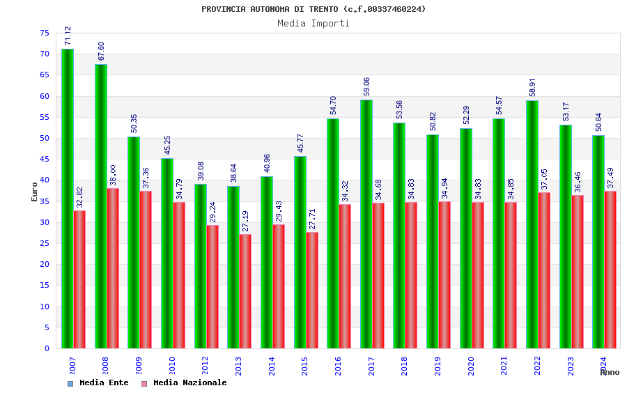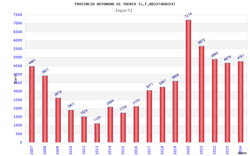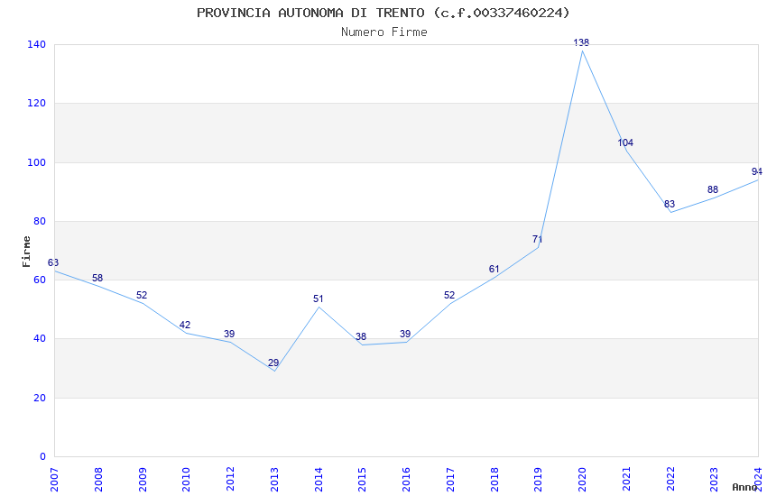 | Anno | Firme | Importi | Media | Naz. | Reg. | Prov. | Comu. |