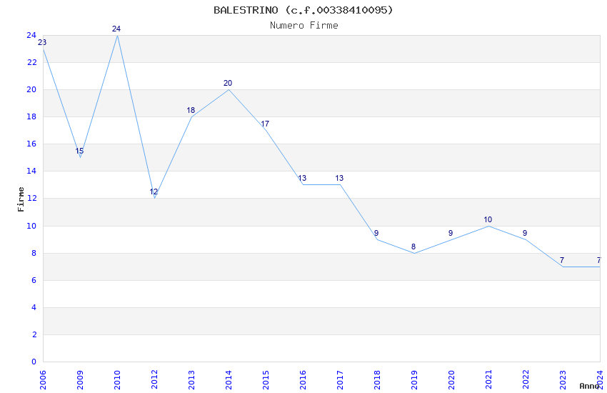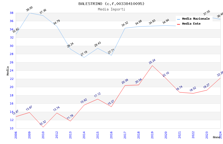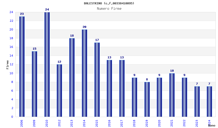 | Anno | Firme | Importi | Media | Naz. | Reg. | Prov. | Comu. |