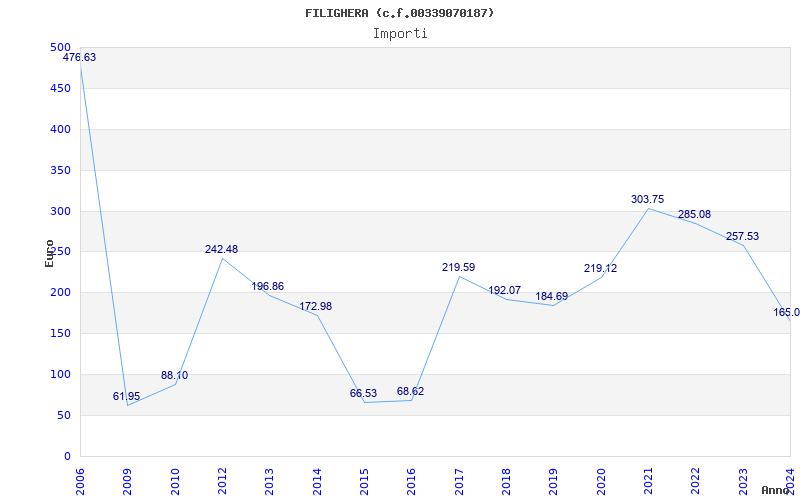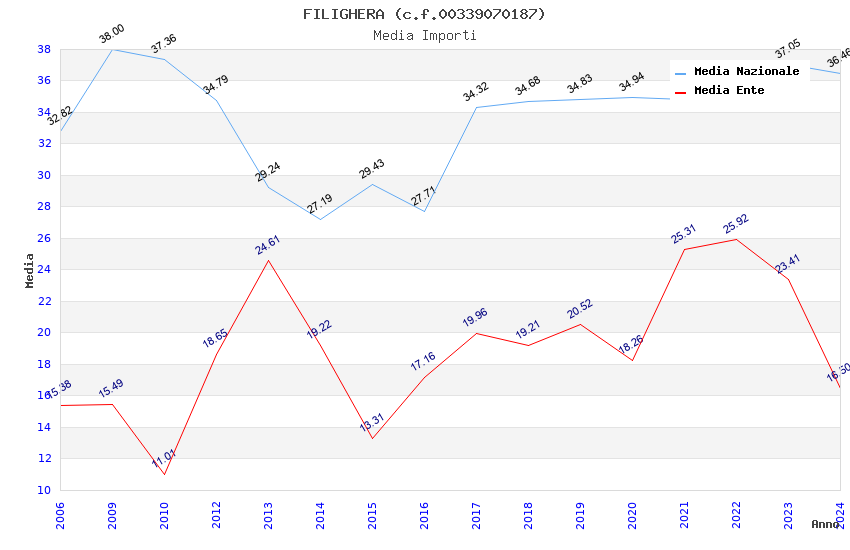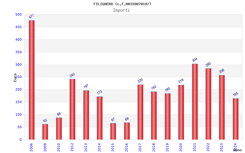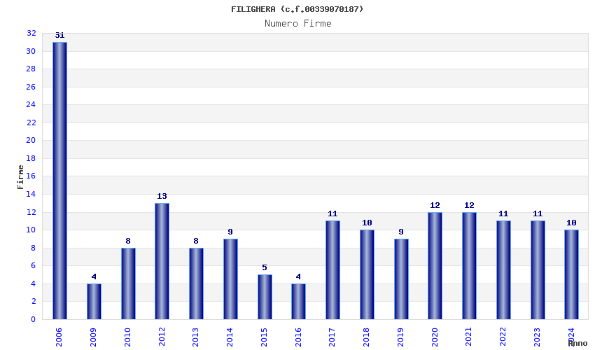 | Anno | Firme | Importi | Media | Naz. | Reg. | Prov. | Comu. |