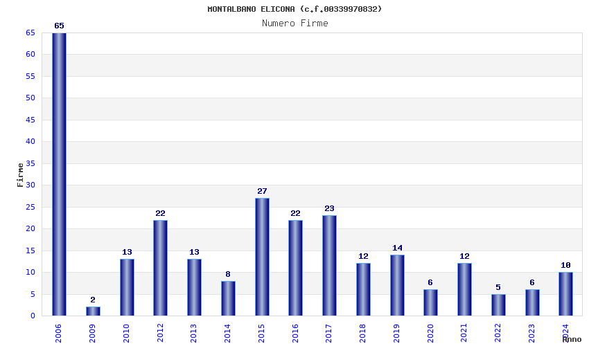 | Anno | Firme | Importi | Media | Naz. | Reg. | Prov. | Comu. |