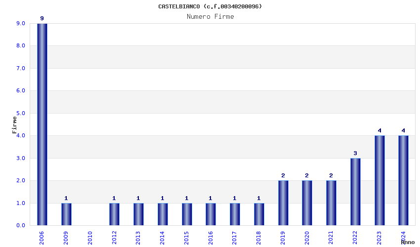 Anno Firme Importi Media Naz. Reg. Prov. Comu.