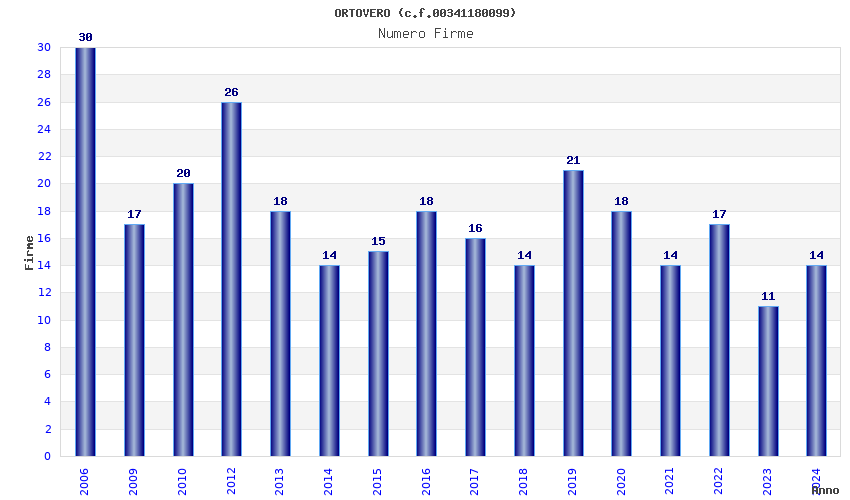 | Anno | Firme | Importi | Media | Naz. | Reg. | Prov. | Comu. |