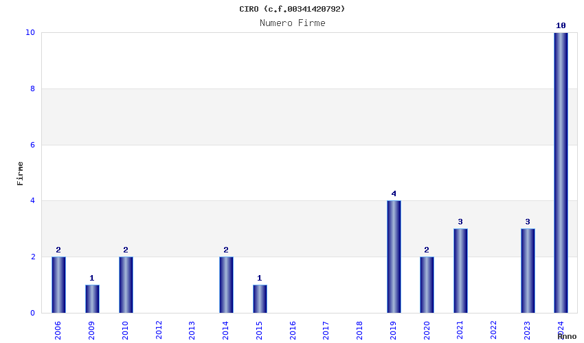 | Anno | Firme | Importi | Media | Naz. | Reg. | Prov. | Comu. |