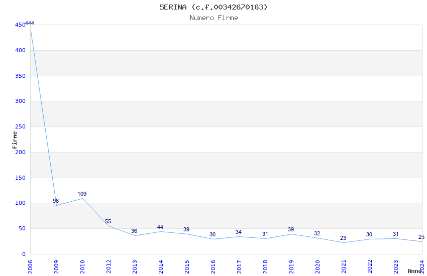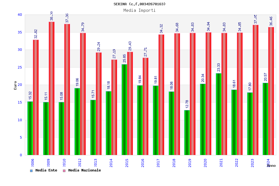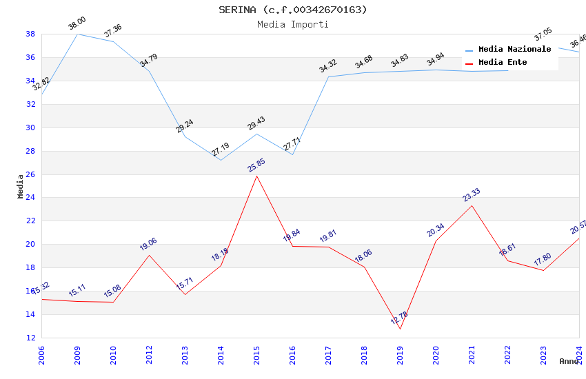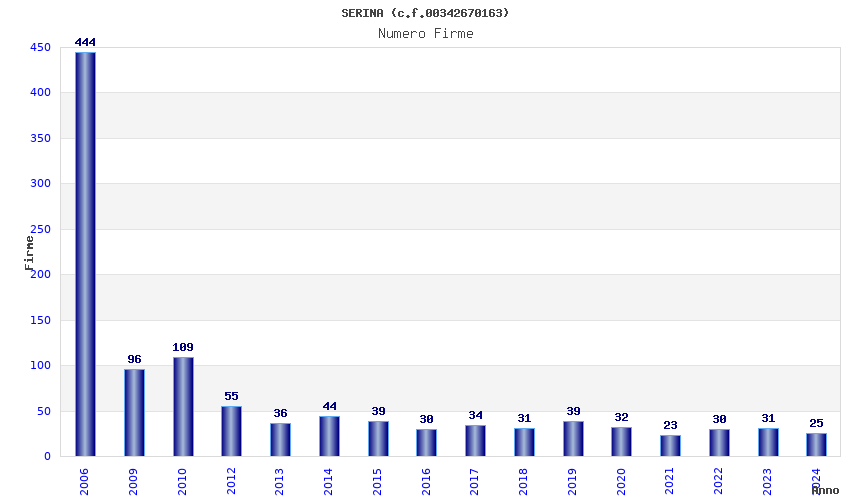 | Anno | Firme | Importi | Media | Naz. | Reg. | Prov. | Comu. |
