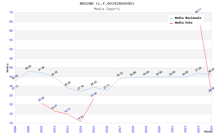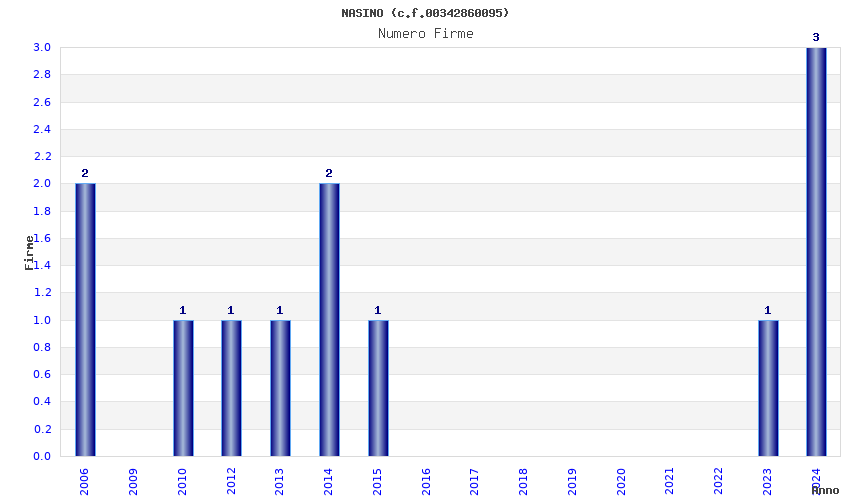 | Anno | Firme | Importi | Media | Naz. | Reg. | Prov. | Comu. |