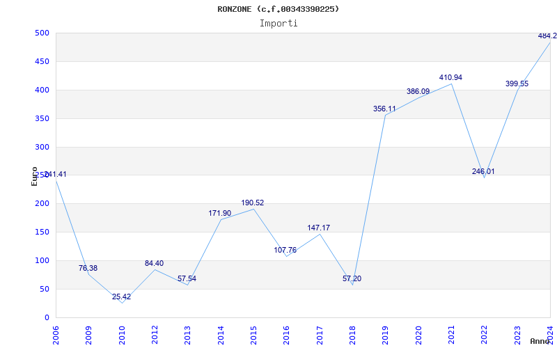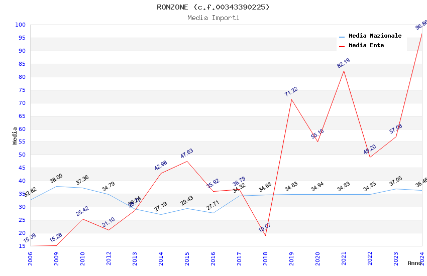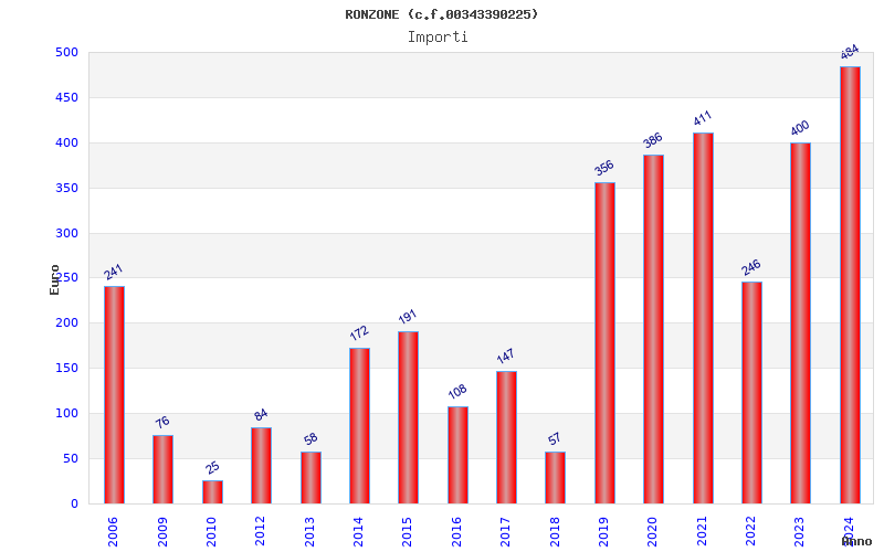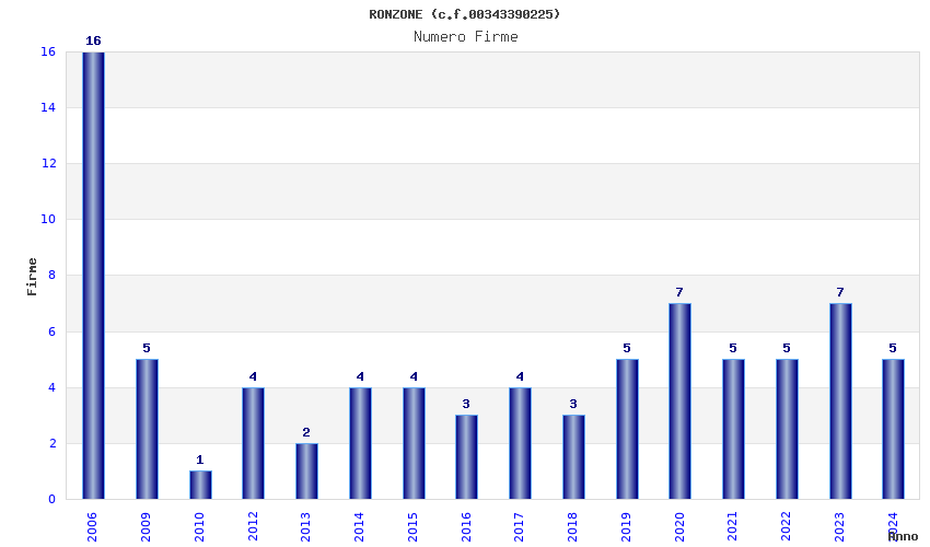 | Anno | Firme | Importi | Media | Naz. | Reg. | Prov. | Comu. |