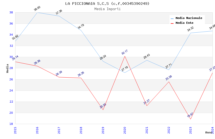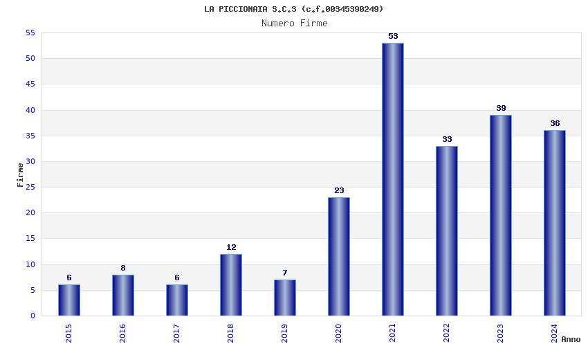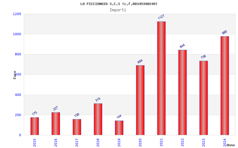 | Anno | Firme | Importi | Media | Naz. | Reg. | Prov. | Comu. |