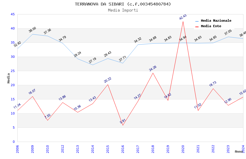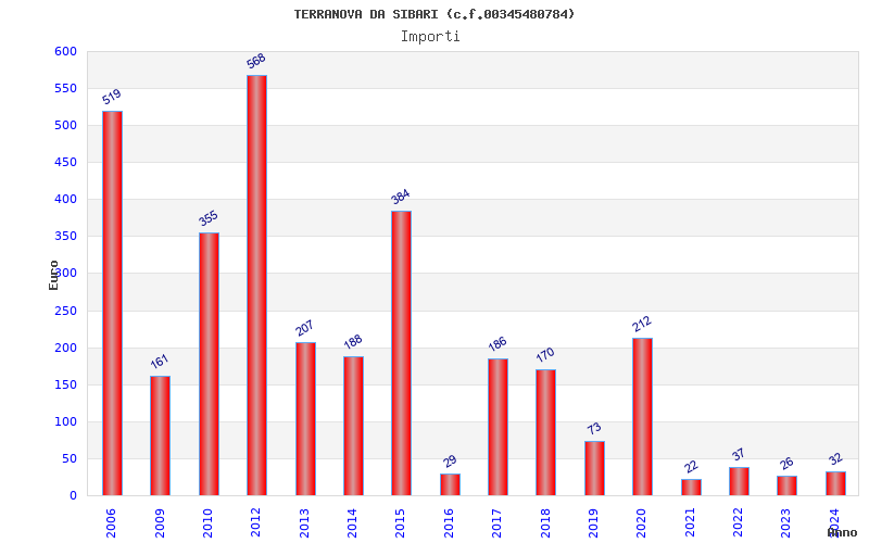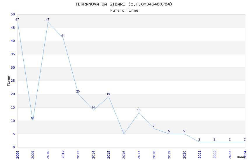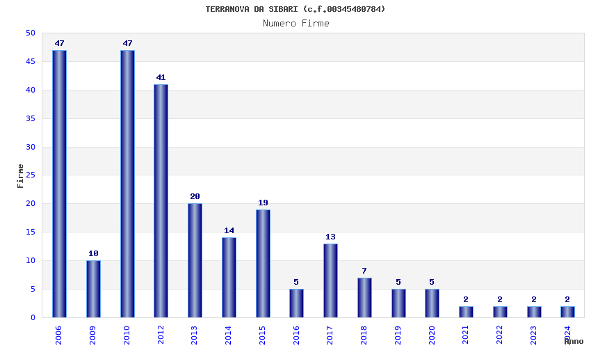 | Anno | Firme | Importi | Media | Naz. | Reg. | Prov. | Comu. |
