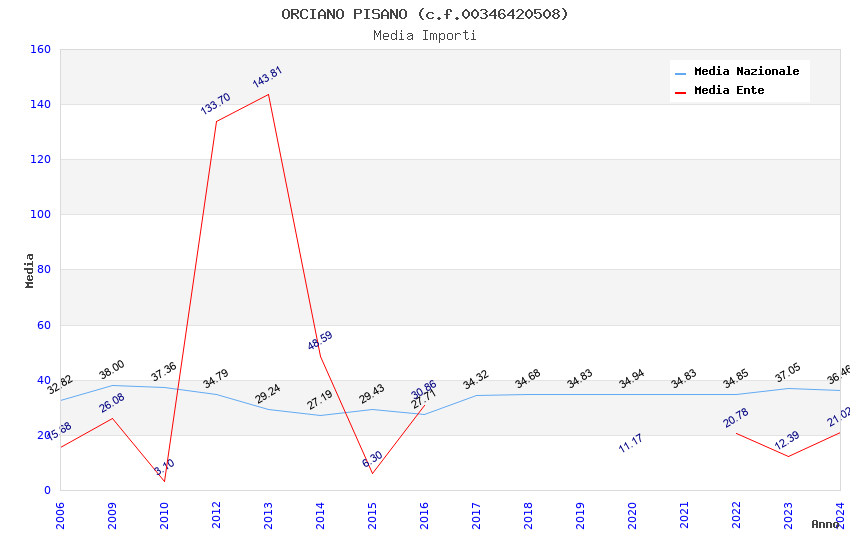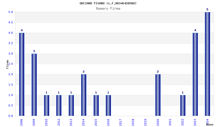 | Anno | Firme | Importi | Media | Naz. | Reg. | Prov. | Comu. |