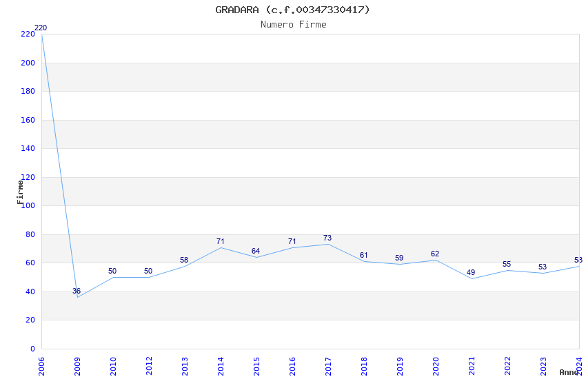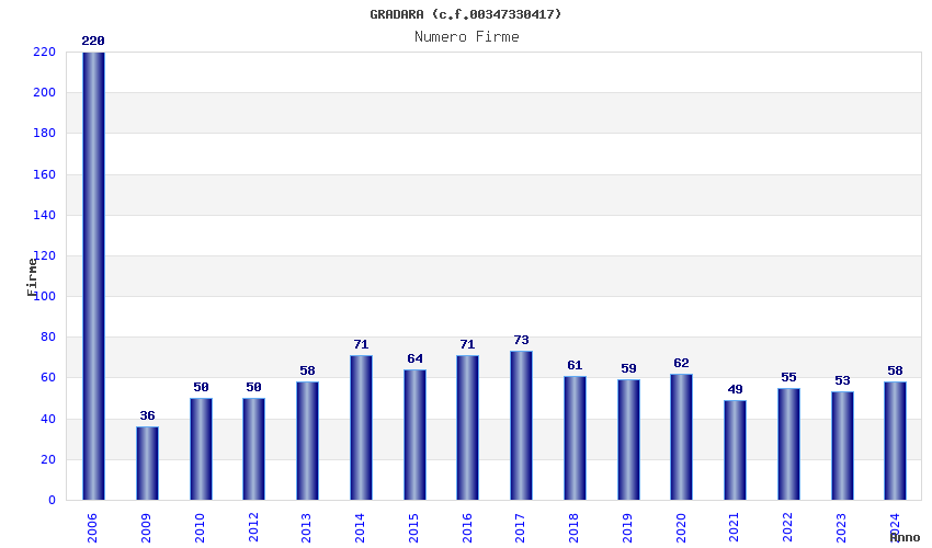 | Anno | Firme | Importi | Media | Naz. | Reg. | Prov. | Comu. |