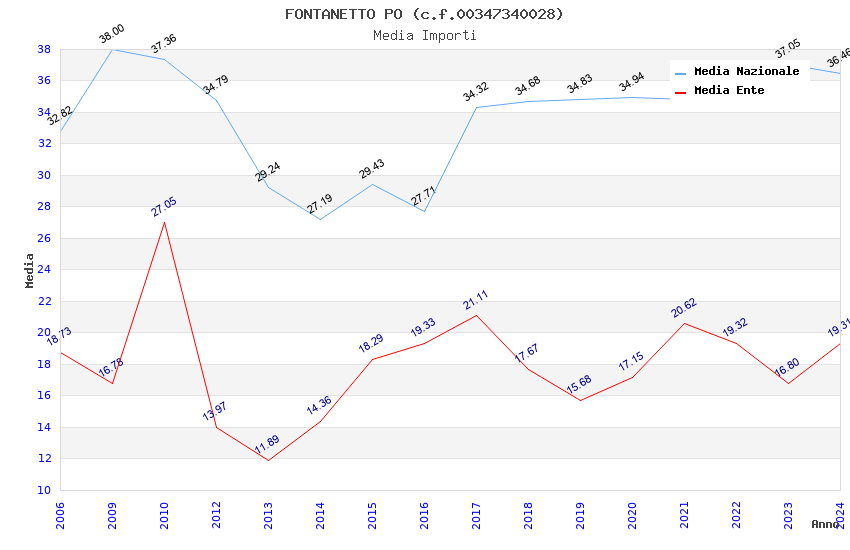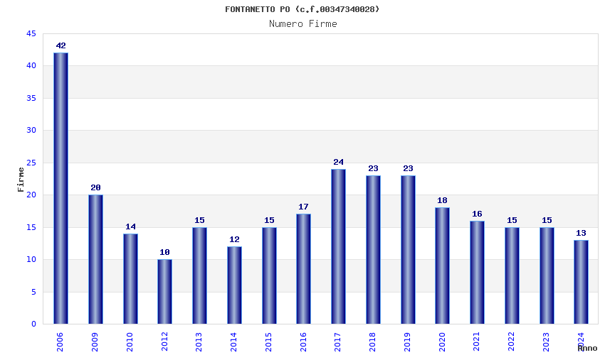 | Anno | Firme | Importi | Media | Naz. | Reg. | Prov. | Comu. |