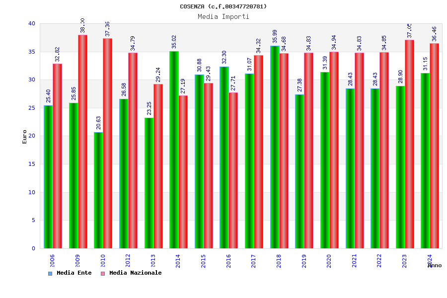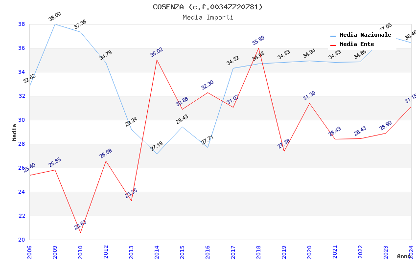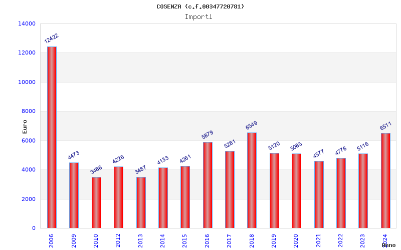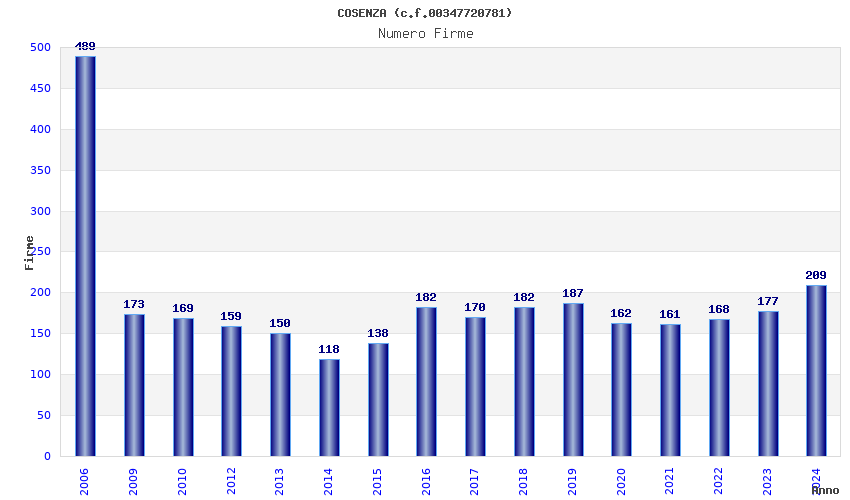 | Anno | Firme | Importi | Media | Naz. | Reg. | Prov. | Comu. |