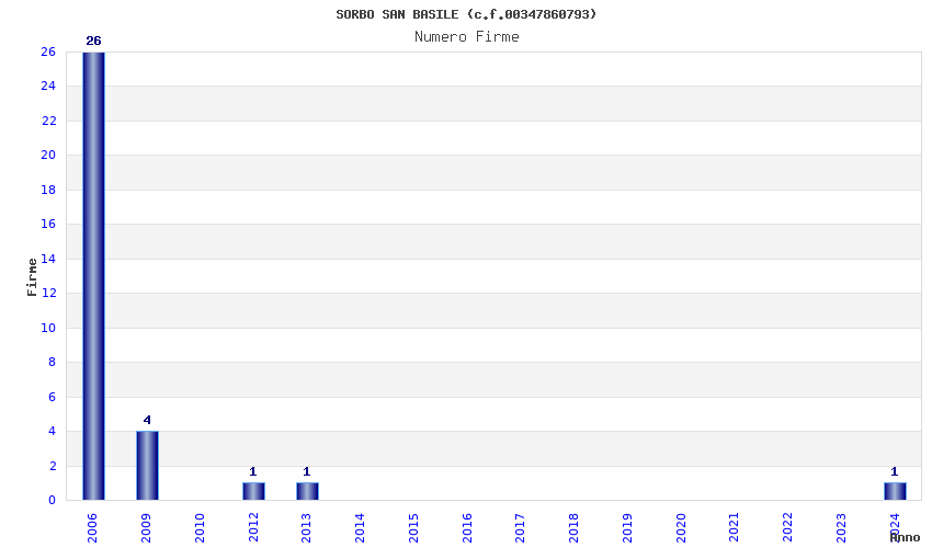 | Anno | Firme | Importi | Media | Naz. | Reg. | Prov. | Comu. |