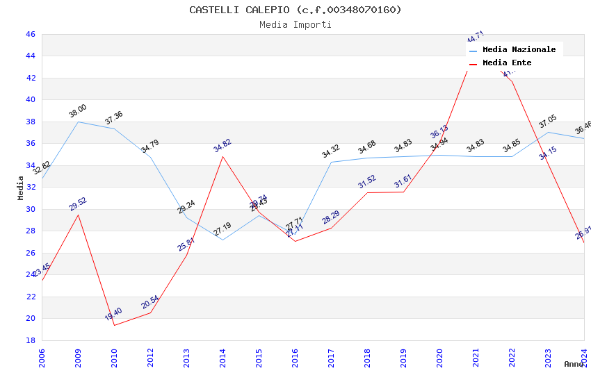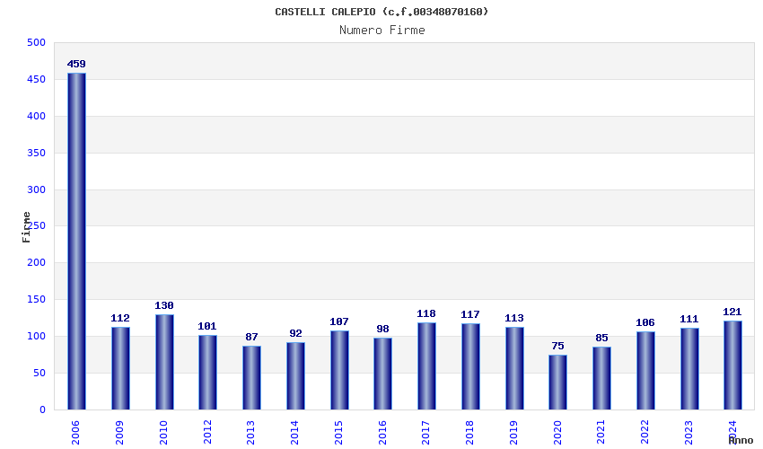 | Anno | Firme | Importi | Media | Naz. | Reg. | Prov. | Comu. |