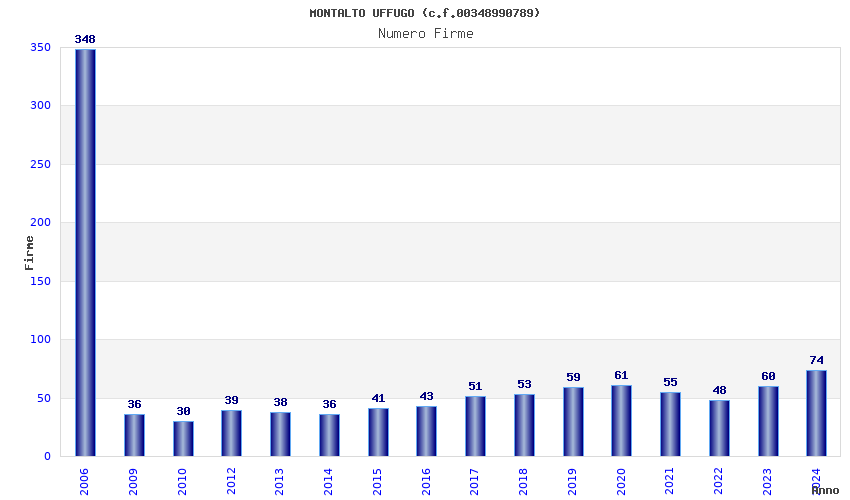 | Anno | Firme | Importi | Media | Naz. | Reg. | Prov. | Comu. |