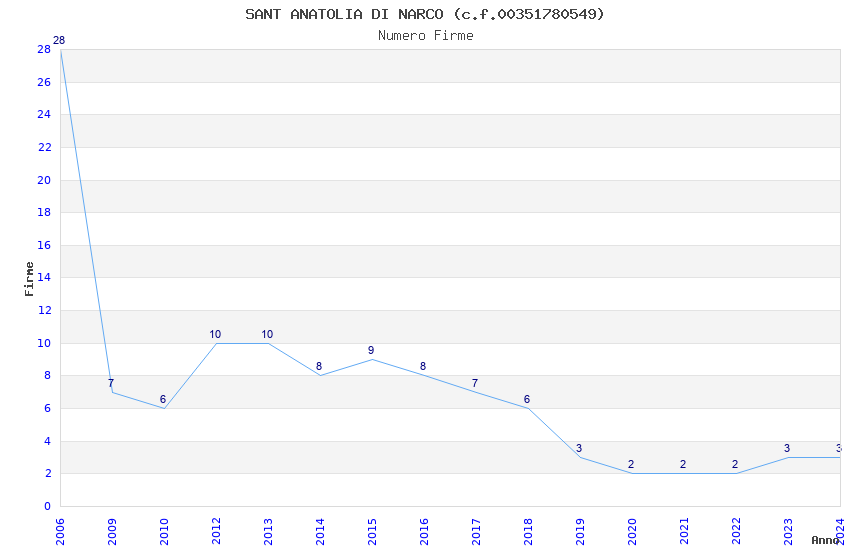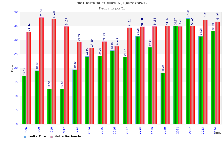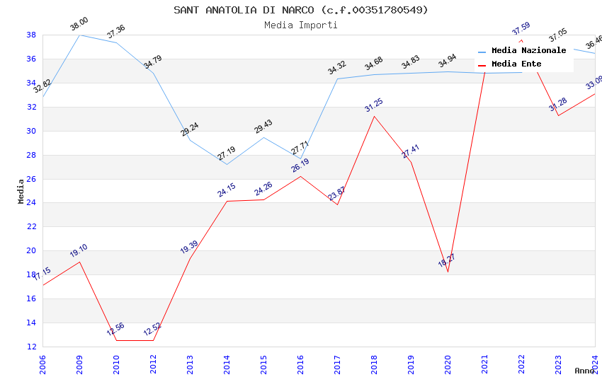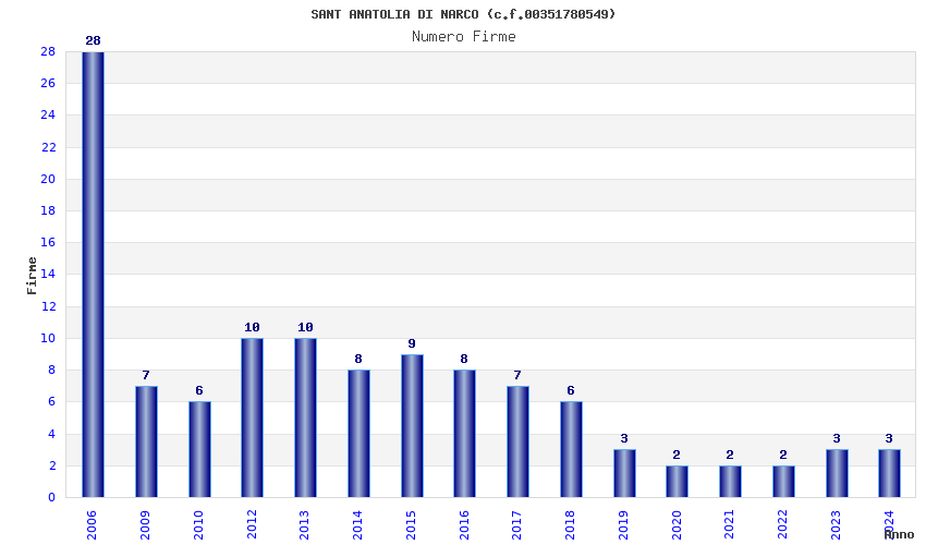| Anno | Firme | Importi | Media | Naz. | Reg. | Prov. | Comu. |