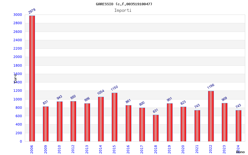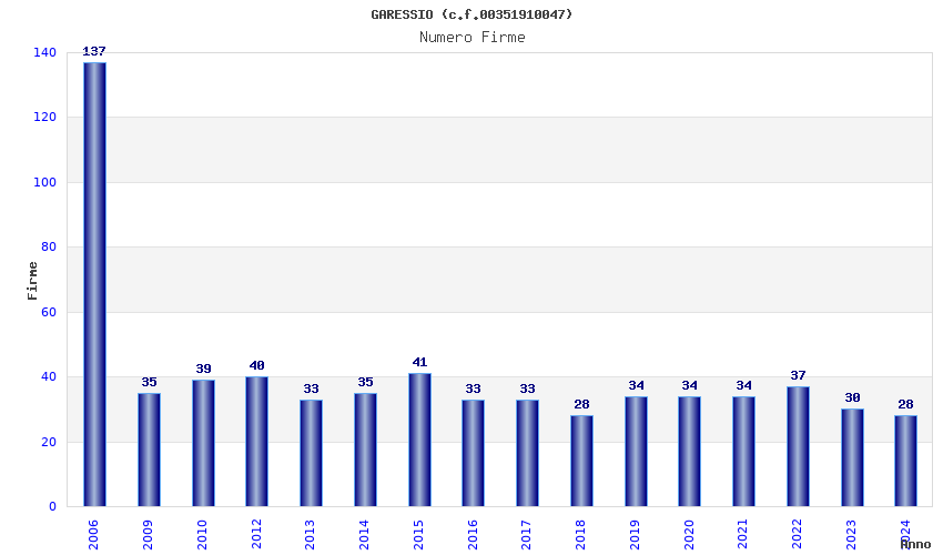 | Anno | Firme | Importi | Media | Naz. | Reg. | Prov. | Comu. |