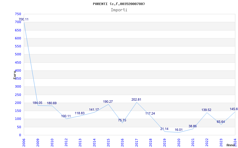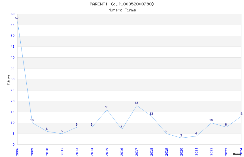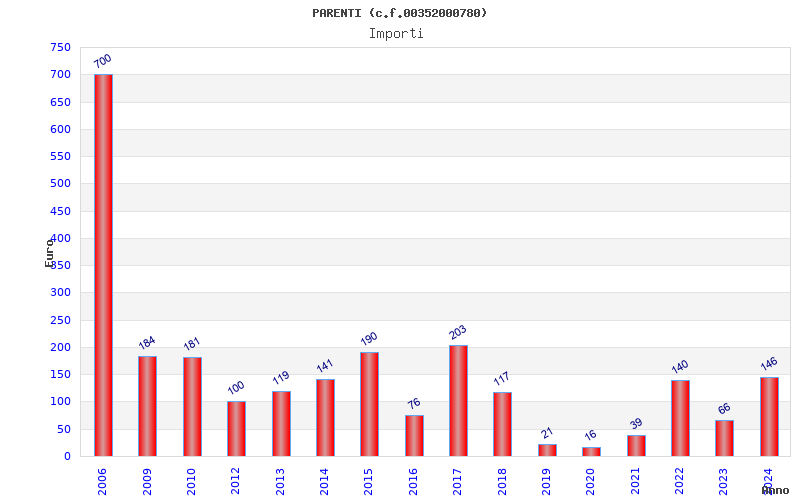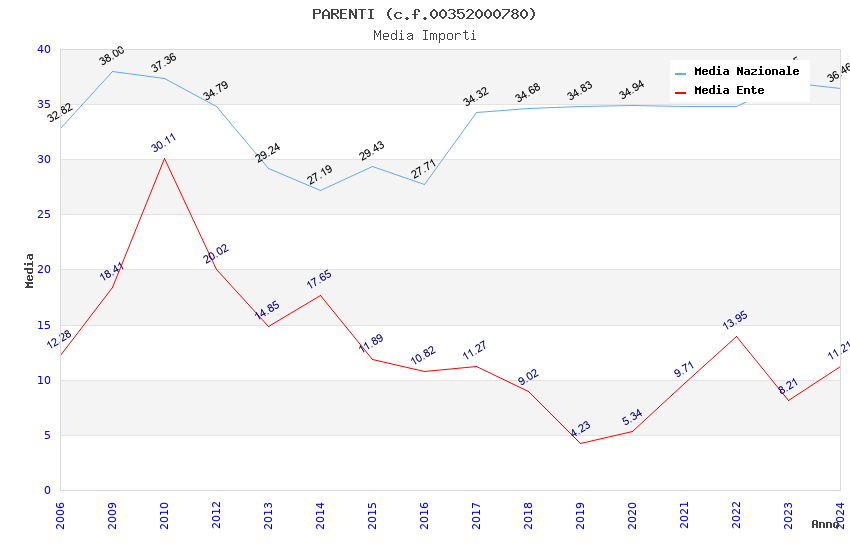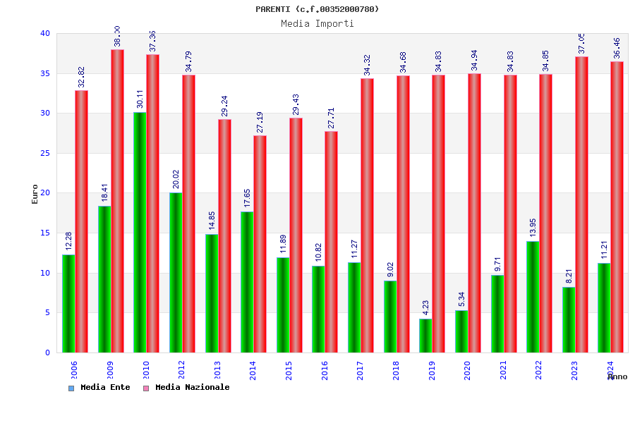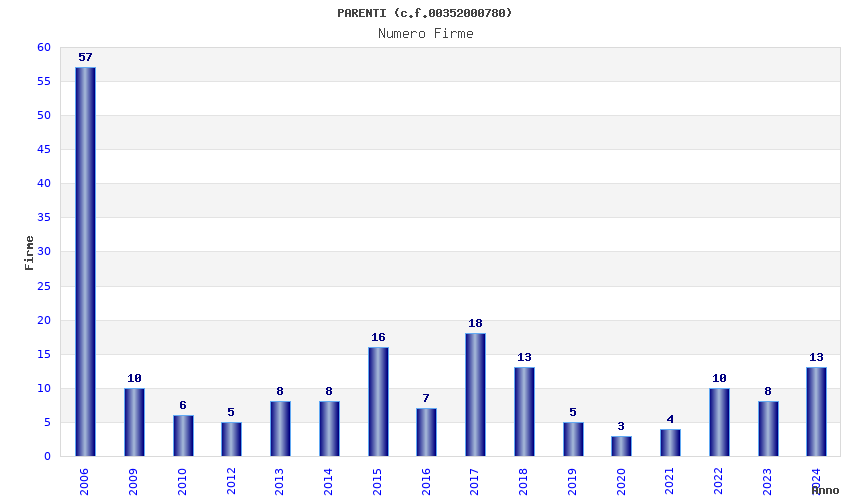 | Anno | Firme | Importi | Media | Naz. | Reg. | Prov. | Comu. |