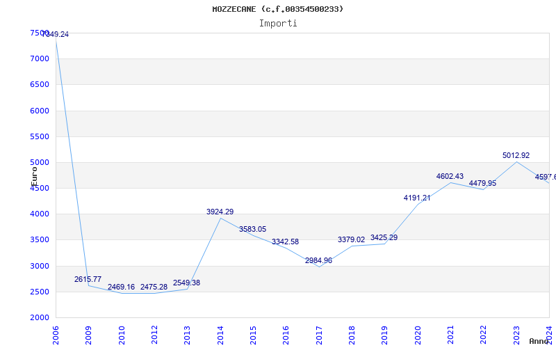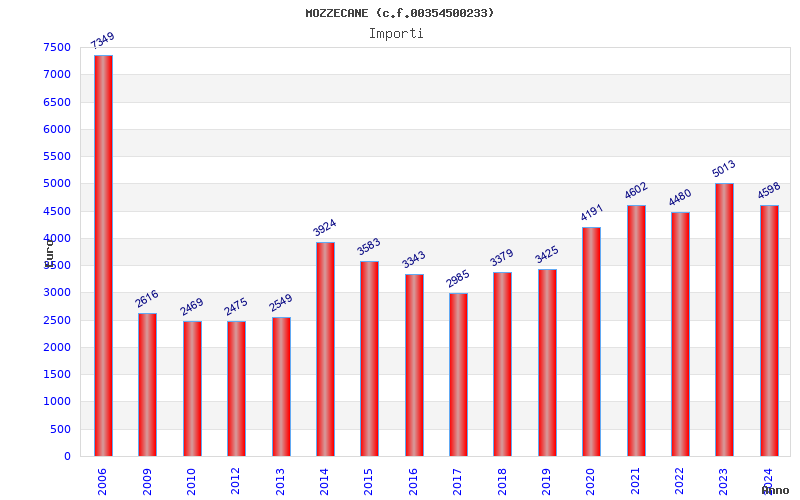 | Anno | Firme | Importi | Media | Naz. | Reg. | Prov. | Comu. |