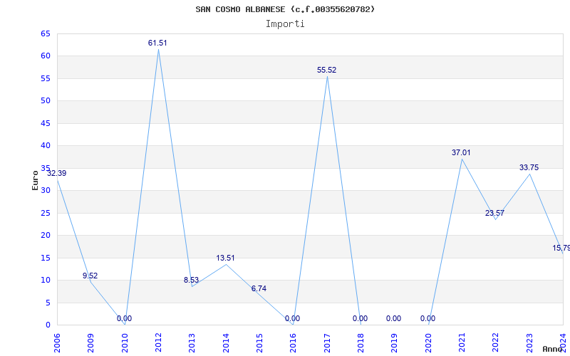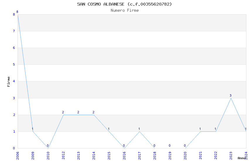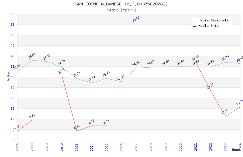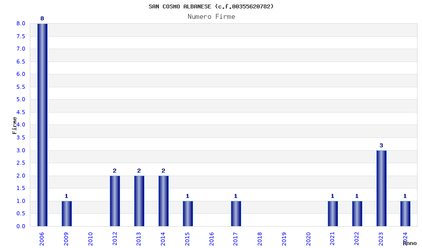 | Anno | Firme | Importi | Media | Naz. | Reg. | Prov. | Comu. |
