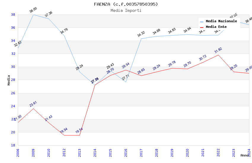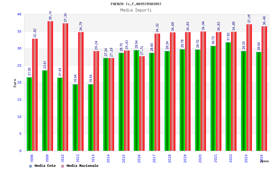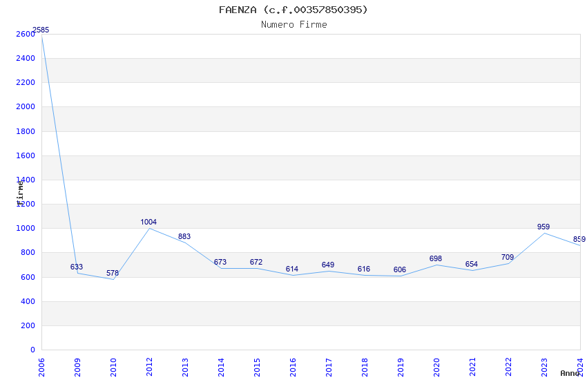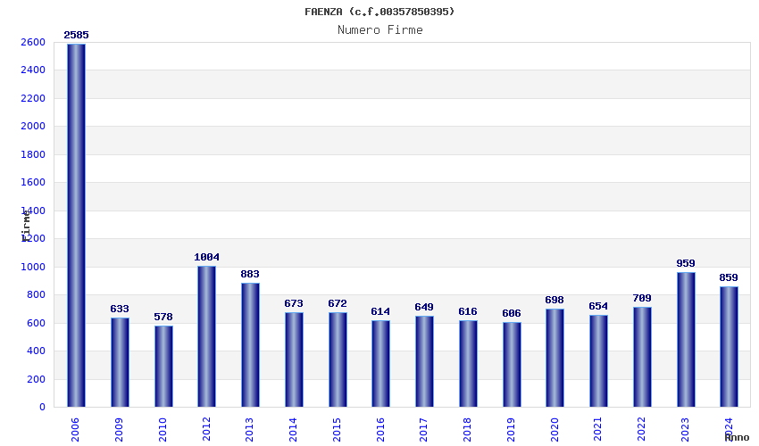 | Anno | Firme | Importi | Media | Naz. | Reg. | Prov. | Comu. |