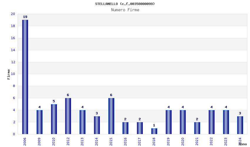 Anno Firme Importi Media Naz. Reg. Prov. Comu.