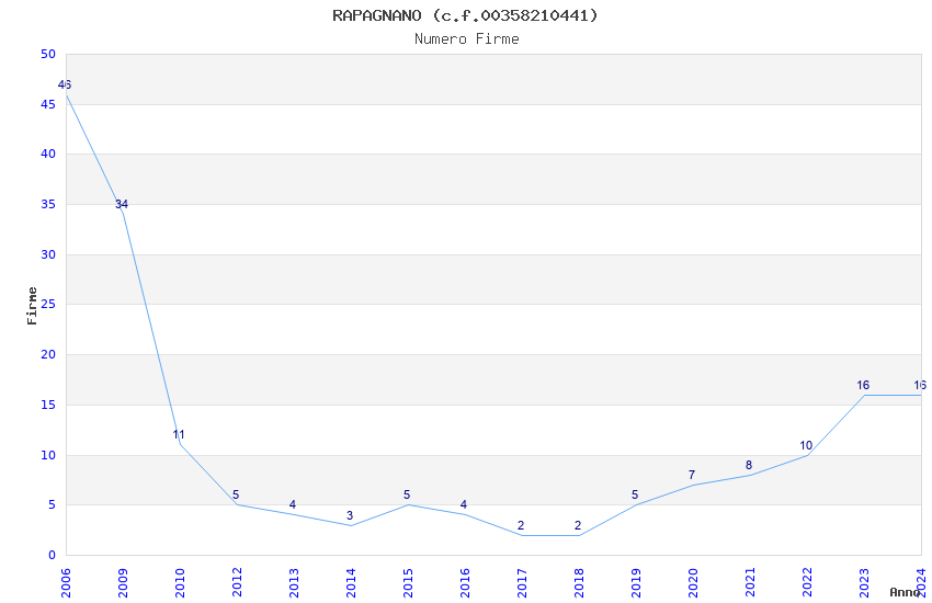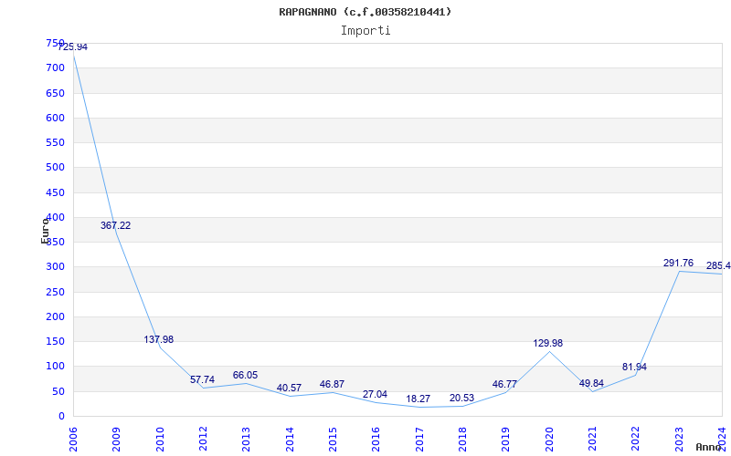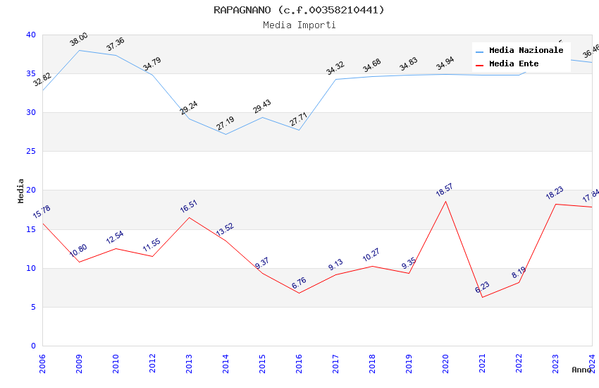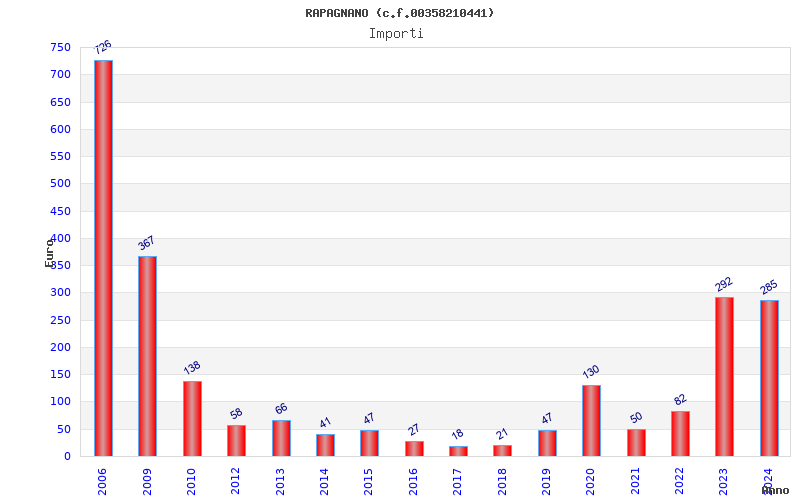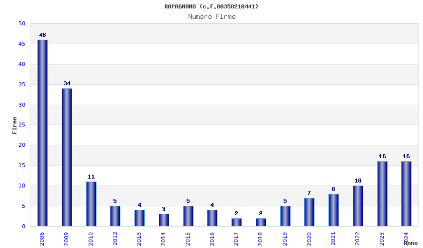 | Anno | Firme | Importi | Media | Naz. | Reg. | Prov. | Comu. |