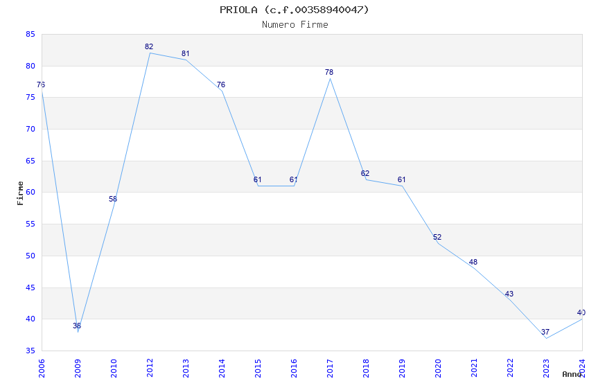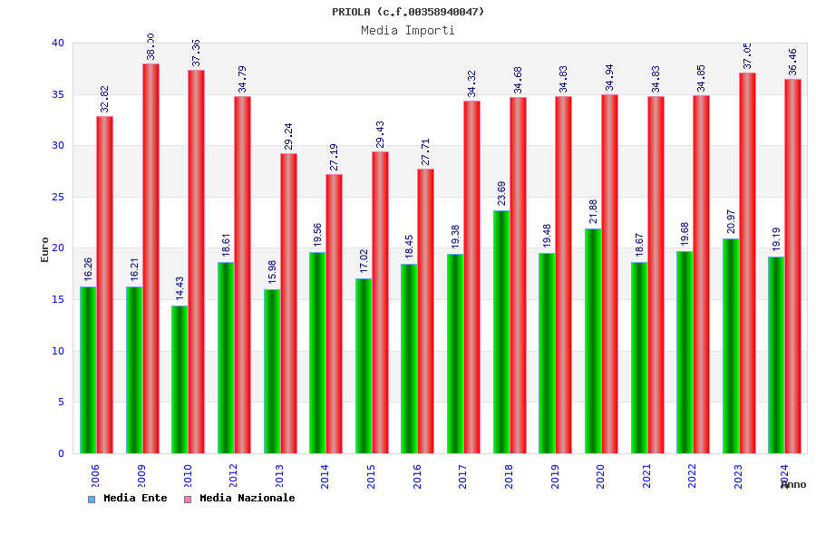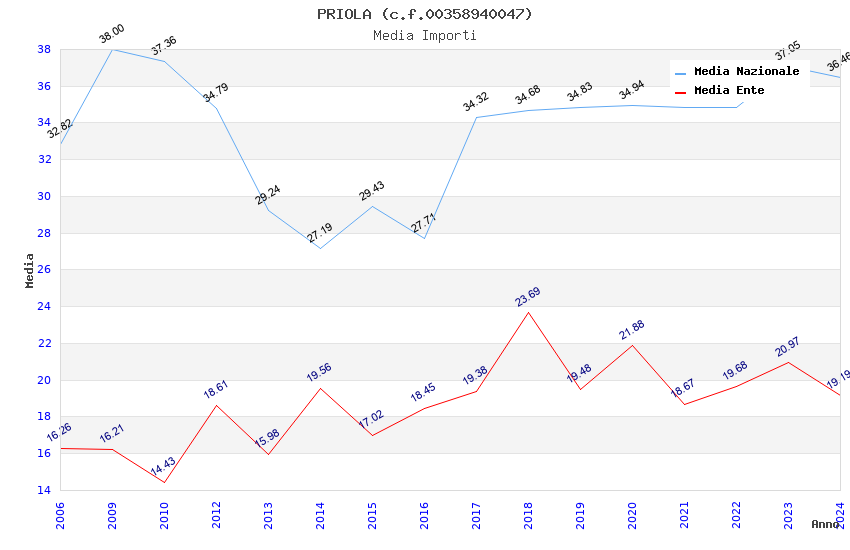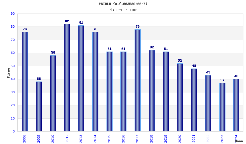 | Anno | Firme | Importi | Media | Naz. | Reg. | Prov. | Comu. |