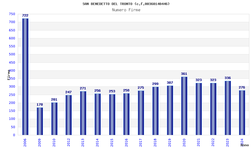 | Anno | Firme | Importi | Media | Naz. | Reg. | Prov. | Comu. |