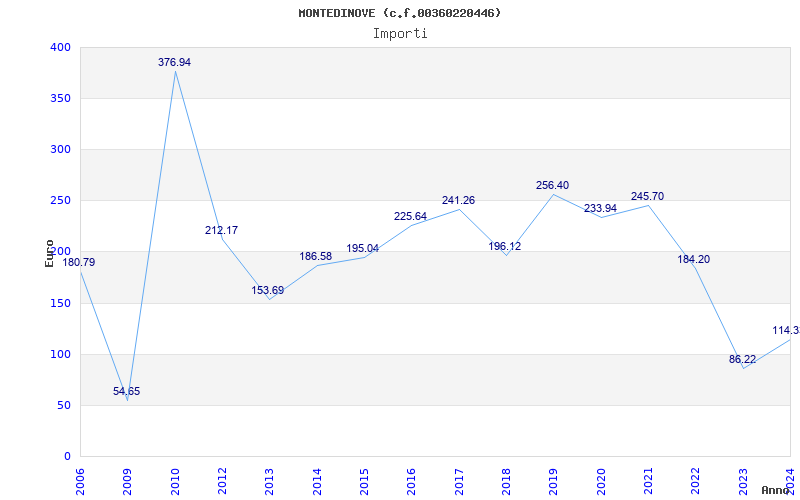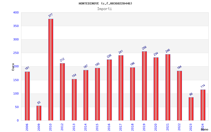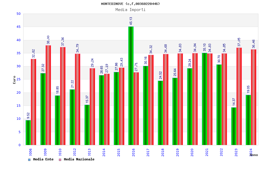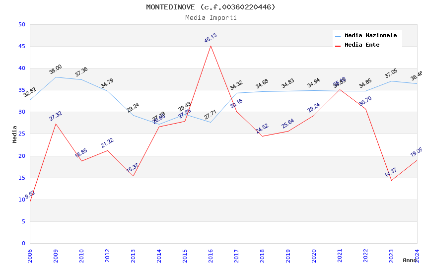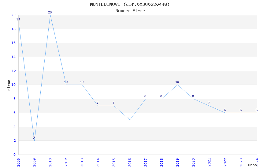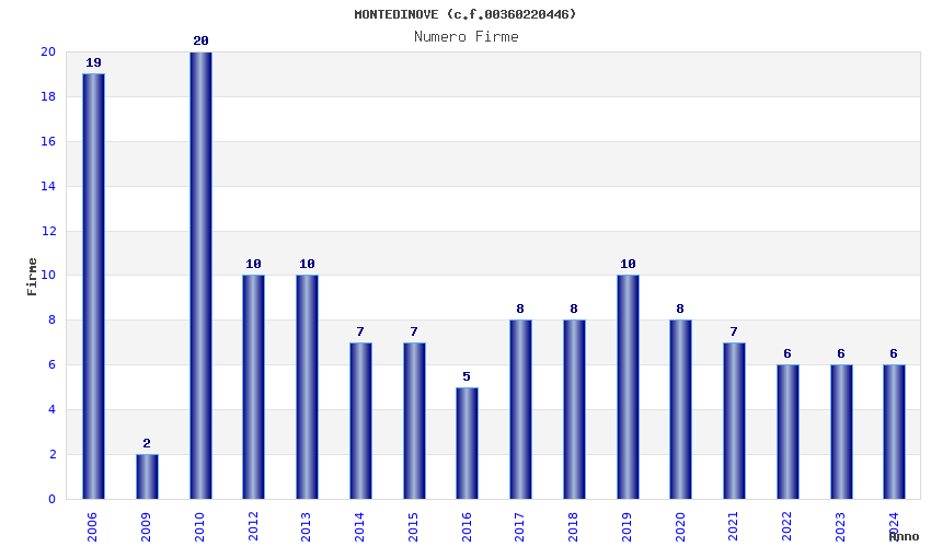 | Anno | Firme | Importi | Media | Naz. | Reg. | Prov. | Comu. |