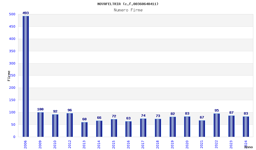 | Anno | Firme | Importi | Media | Naz. | Reg. | Prov. | Comu. |