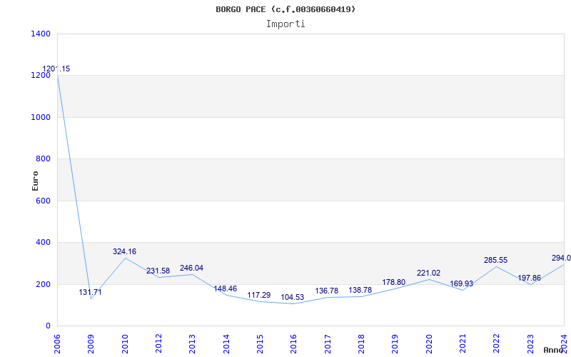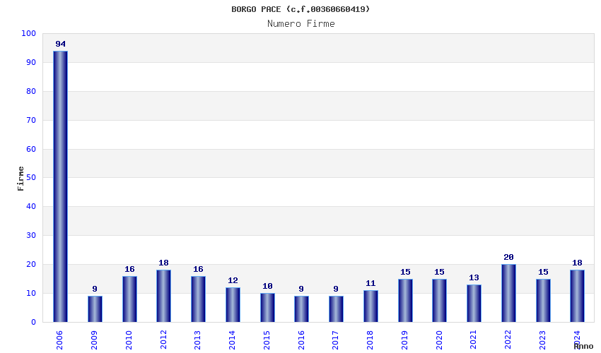 | Anno | Firme | Importi | Media | Naz. | Reg. | Prov. | Comu. |