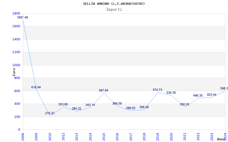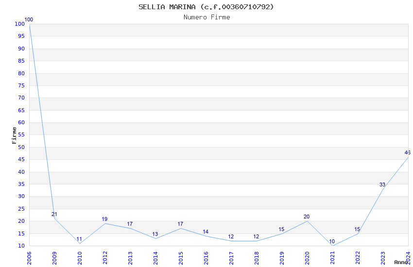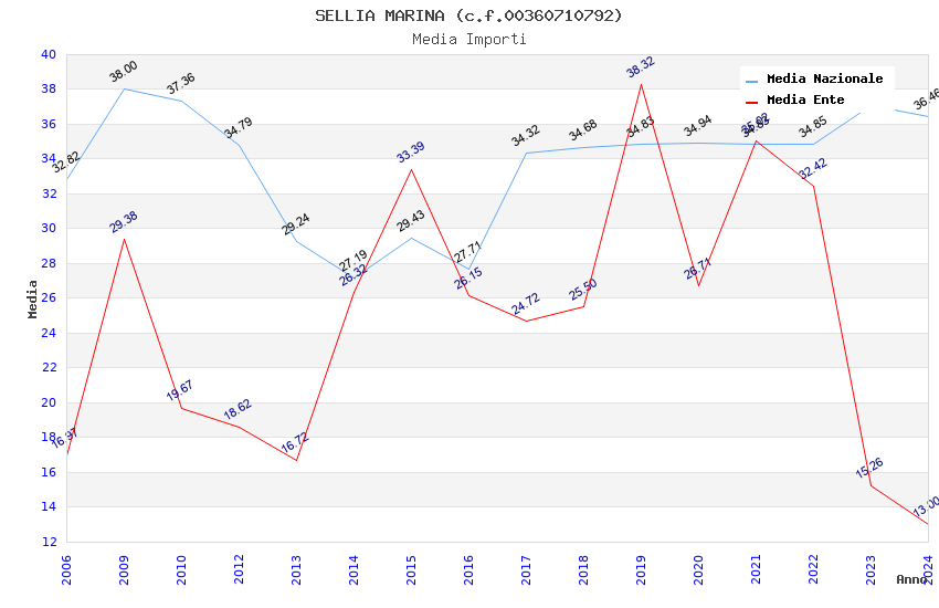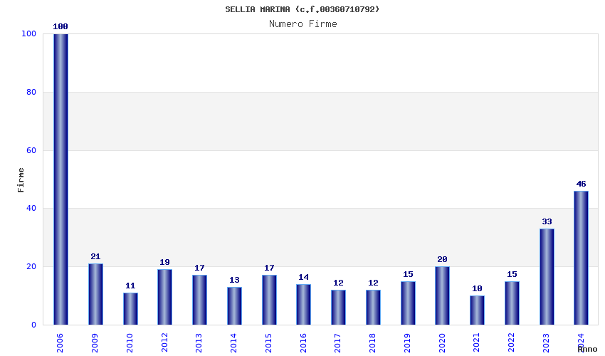 | Anno | Firme | Importi | Media | Naz. | Reg. | Prov. | Comu. |