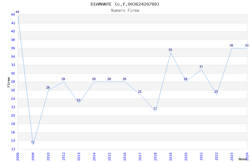 Anno Firme Importi Media Naz. Reg. Prov. Comu.