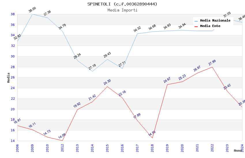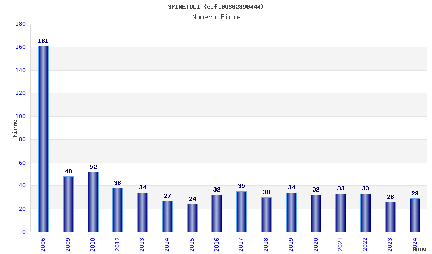 | Anno | Firme | Importi | Media | Naz. | Reg. | Prov. | Comu. |
