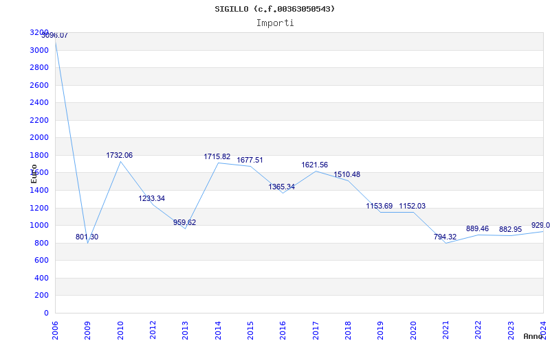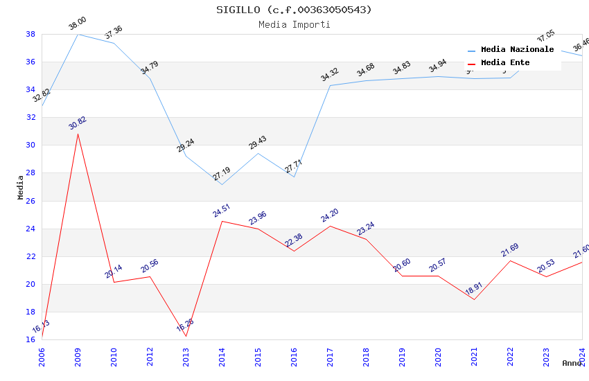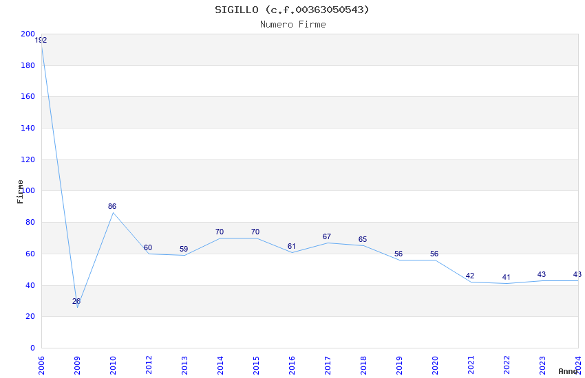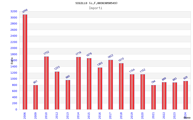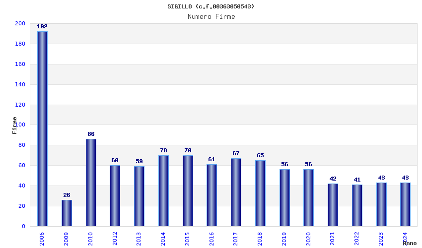 | Anno | Firme | Importi | Media | Naz. | Reg. | Prov. | Comu. |