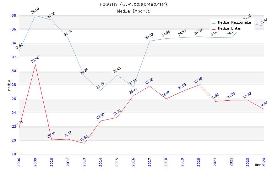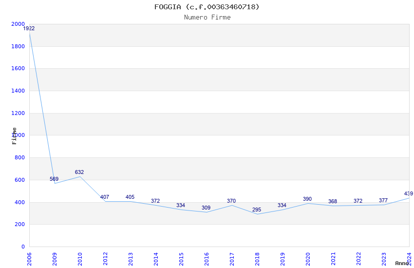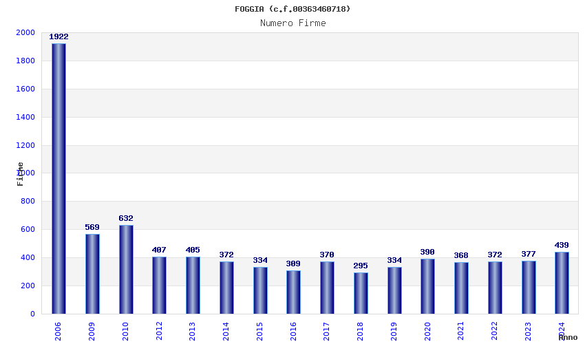 | Anno | Firme | Importi | Media | Naz. | Reg. | Prov. | Comu. |