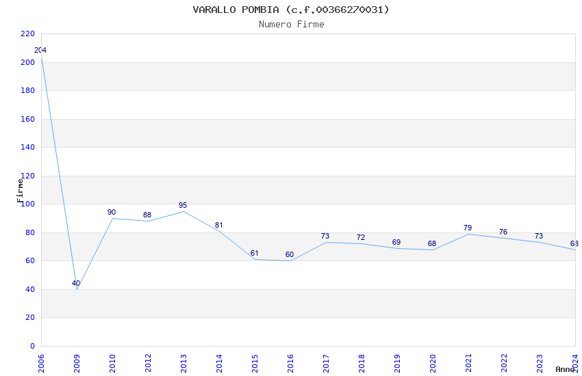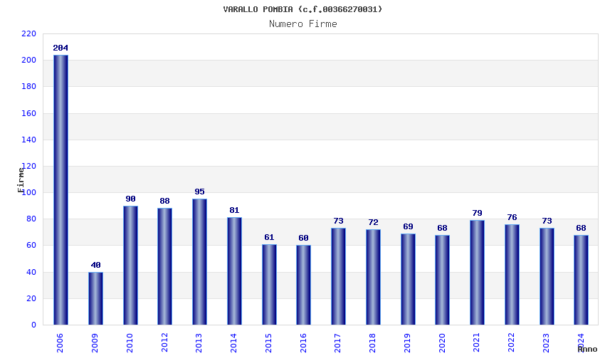 | Anno | Firme | Importi | Media | Naz. | Reg. | Prov. | Comu. |