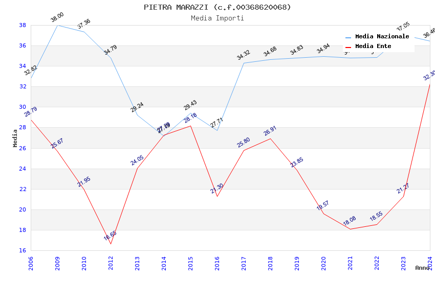 | Anno | Firme | Importi | Media | Naz. | Reg. | Prov. | Comu. |