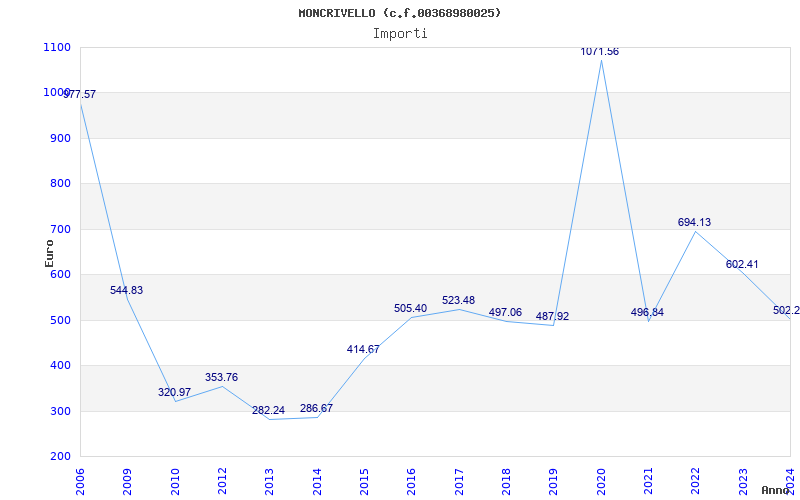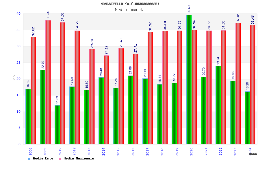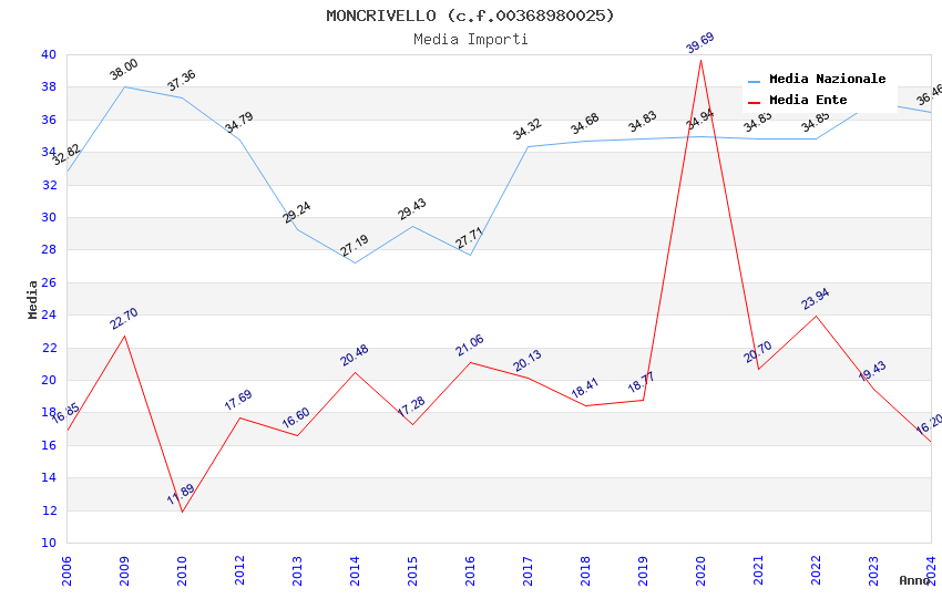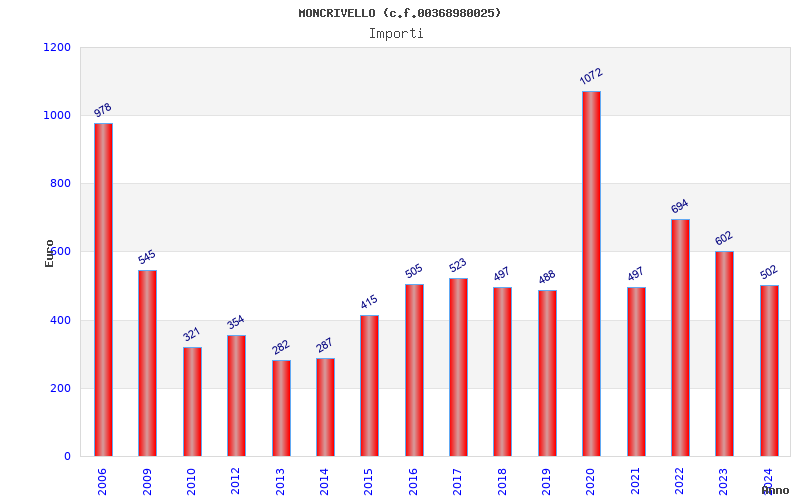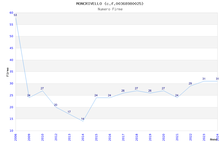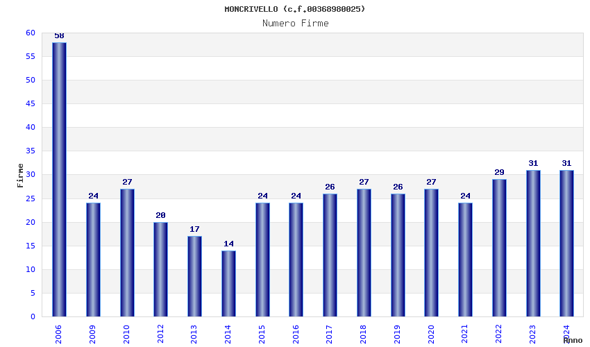 | Anno | Firme | Importi | Media | Naz. | Reg. | Prov. | Comu. |