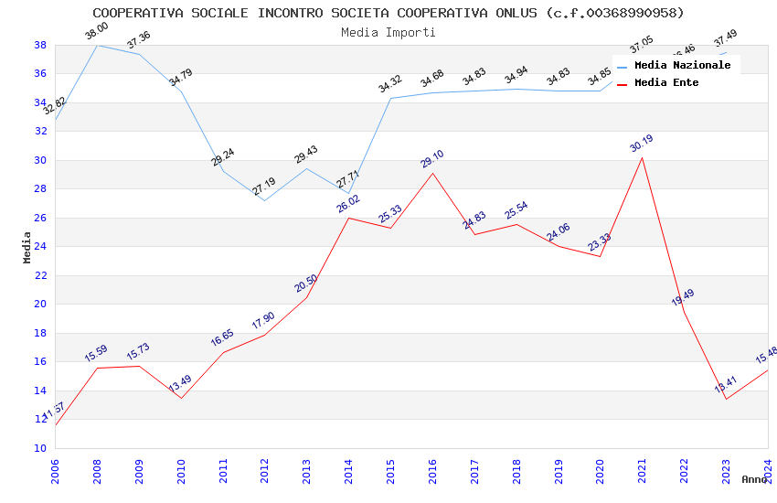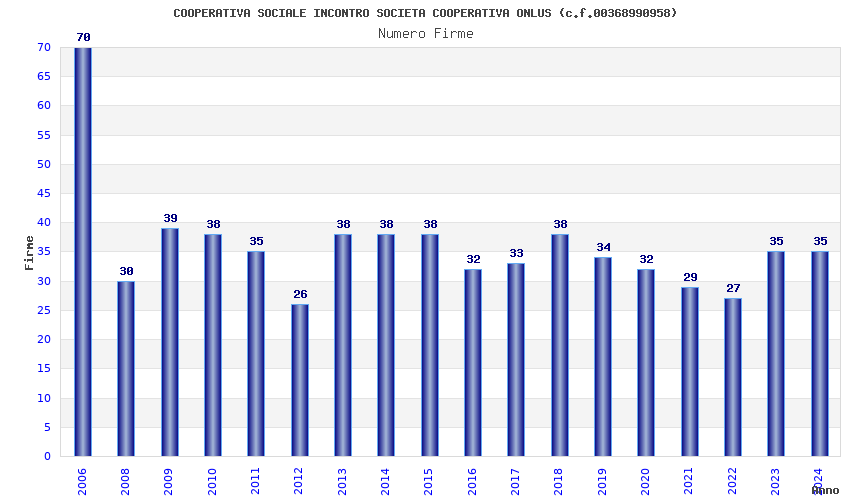 | Anno | Firme | Importi | Media | Naz. | Reg. | Prov. | Comu. |