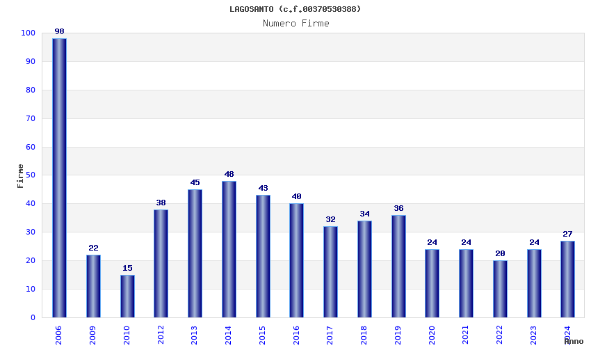 | Anno | Firme | Importi | Media | Naz. | Reg. | Prov. | Comu. |