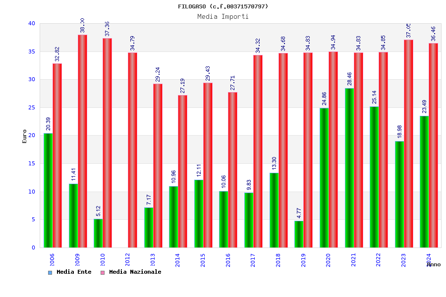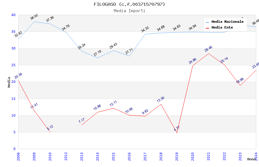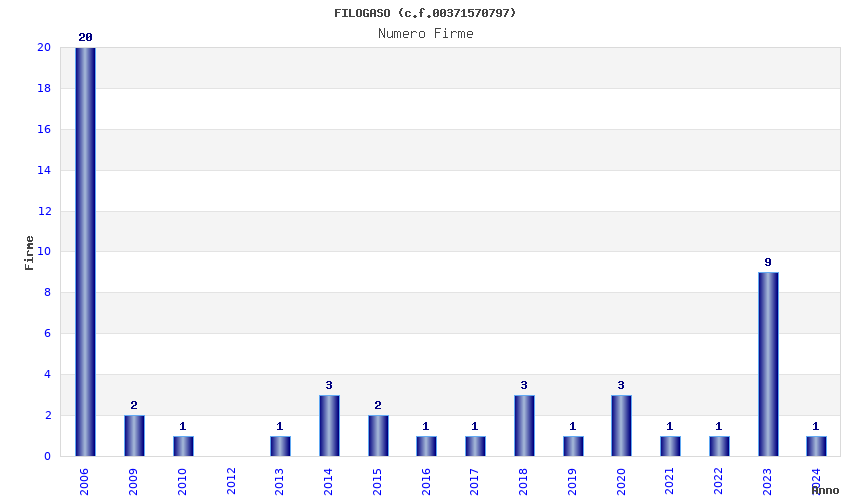 | Anno | Firme | Importi | Media | Naz. | Reg. | Prov. | Comu. |